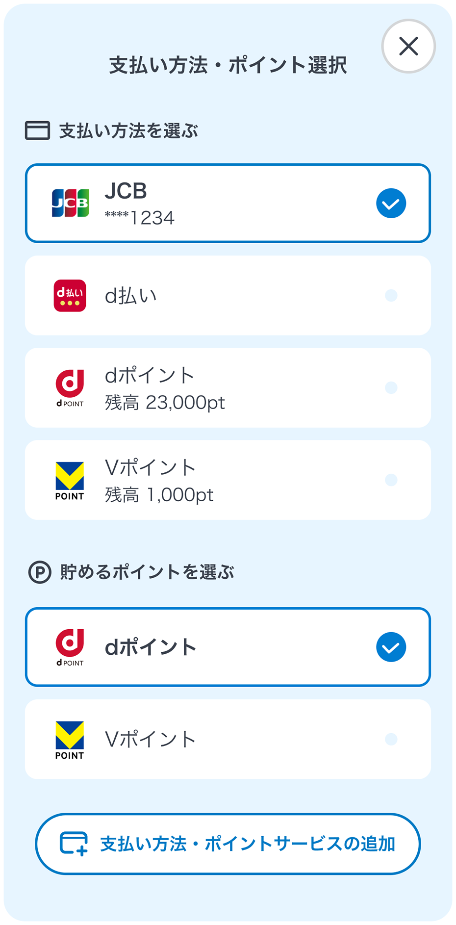 ジハンピアプリに連携したマネーブランド及び共通ポイントは、以下手順で確認できます。 1.ホーム画面の「支払い・ポイント変更」ボタンを選択 2.表示されたマネーブランド及び共通ポイントが連携済み